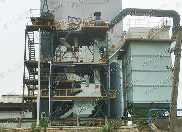 原料經(jīng)過(guò)電子秤進(jìn)入到皮帶輸送機(jī)中,由全封閉的提升機(jī)將物料入到五孔碾磨制砂機(jī)內(nèi)進(jìn)行破碎處理,再由空氣篩對(duì)破碎后的物料進(jìn)行篩分、選粉處理,篩分后的較大物料會(huì)返回五孔碾磨制砂機(jī)中進(jìn)行二次破碎,符合要求的砂子則由傳送帶輸送至成品倉(cāng)中;篩分過(guò)程中的粉塵會(huì)經(jīng)粗細(xì)粉分離機(jī)進(jìn)入到布袋收塵器內(nèi),而其中較大的粗顆粒會(huì)在粗細(xì)粉分離機(jī)的作用下,按需求在成品砂中進(jìn)行回?fù)?,?xì)粉塵將通過(guò)風(fēng)力進(jìn)入到布袋收塵器,作為副產(chǎn)品進(jìn)行使用。